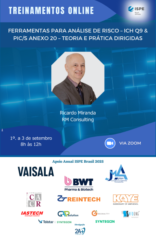 Treinamento Online: “Ferramentas para Análise de Risco – ICH Q9 & PIC/S Anexo 20 – Teoria e Práticas Dirigidas”