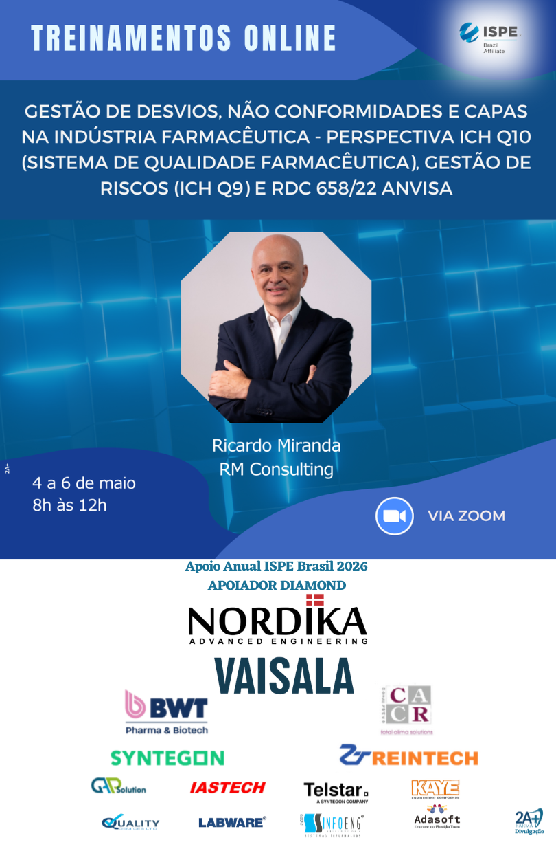 Treinamento Online: Gestão de Desvios, Não Conformidades e CAPAs na Indústria Farmacêutica – Perspectiva ICH Q10 (Sistema de Qualidade Farmacêutica), Gestão de Riscos (ICH Q9) e RDC 658/22 Anvisa