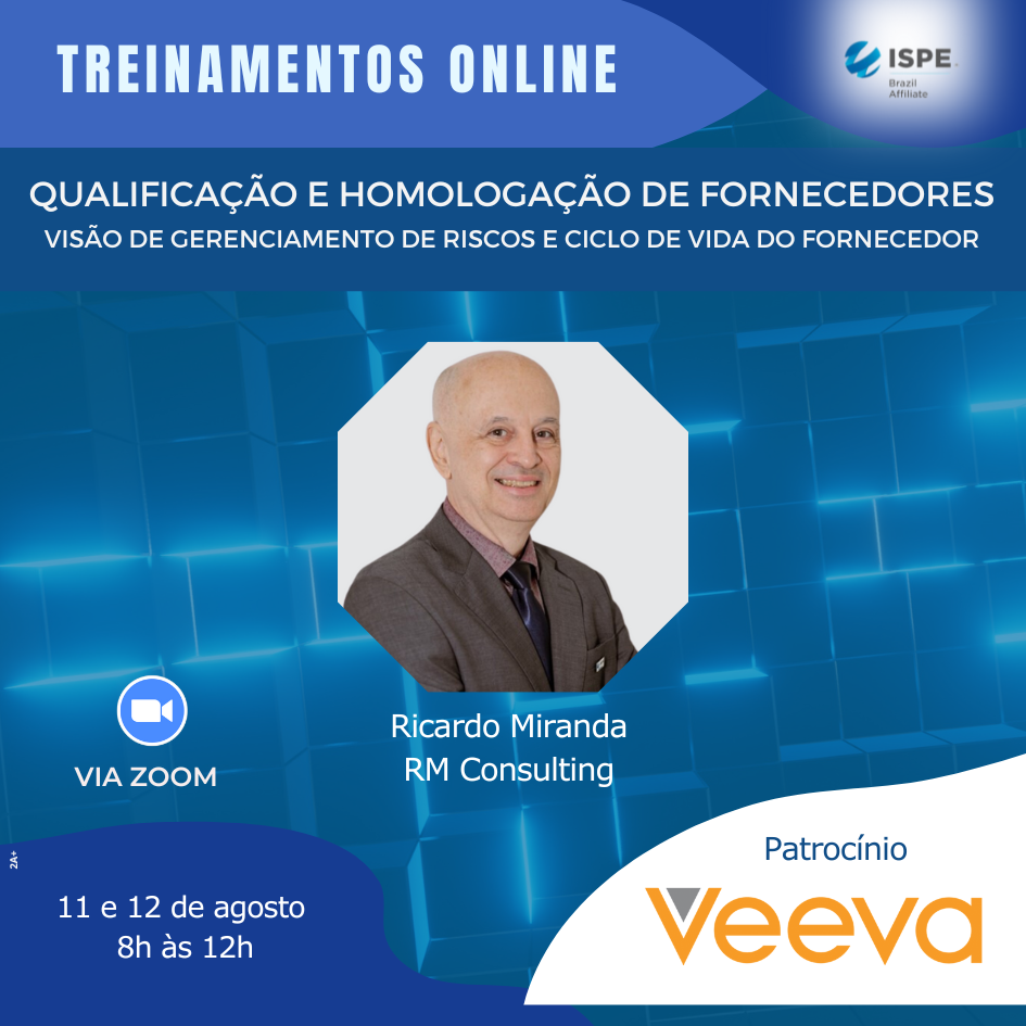 O treinamento de “Qualificação e Gestão de Fornecedores Farmacêuticos – Visão de Gerenciamento de Riscos e Ciclo de Vida do Fornecedor” provê ao público a capacitação para desenvolver o programa de qualificação (de acordo com as RDCs Anvisa, ICH Q8, Q9, Q10 e ISO 9001), qualificar, auditar e selecionar os fornecedores baseados em ferramenta de análise de risco, além de gerir a performance dos fornecedores farmacêuticos qualificados através de indicadores de desempenho, otimizando as relações entre as empresas e disponibilizando materiais e produtos de qualidade nos prazos acordados.