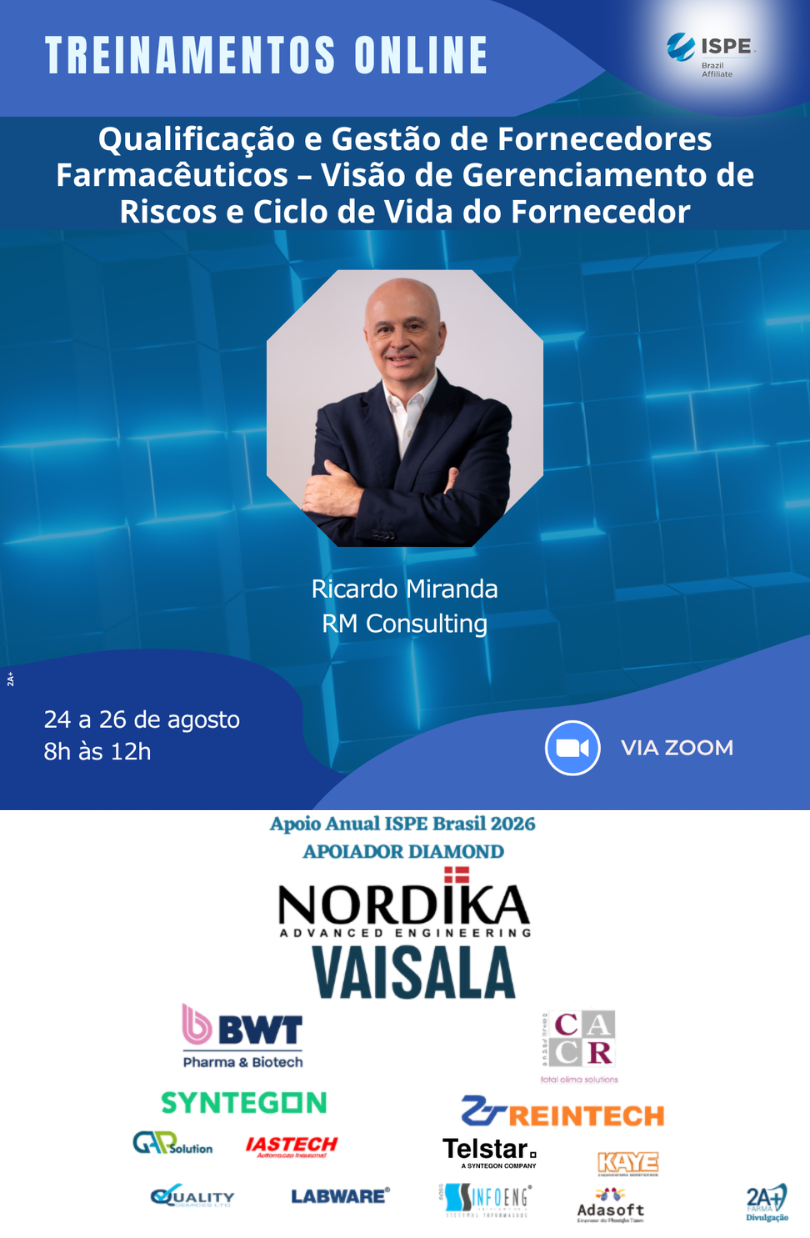 A metodologia do curso é prática, orientada a risco e baseada em exemplos reais, refletindo a complexidade atual das cadeias de suprimentos farmacêuticas e as expectativas das autoridades regulatórias, contribuindo para decisões mais assertivas, sustentáveis e alinhadas ao Sistema da Qualidade Farmacêutica.