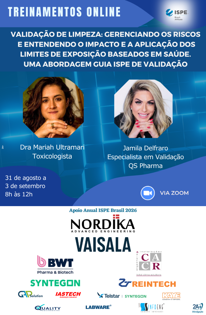 Treinamento Online: Validação de Limpeza: Gerenciando os Riscos e Entendendo o Impacto e a Aplicação dos Limites de Exposição Baseados em Saúde – Uma abordagem Guia ISPE de Validação