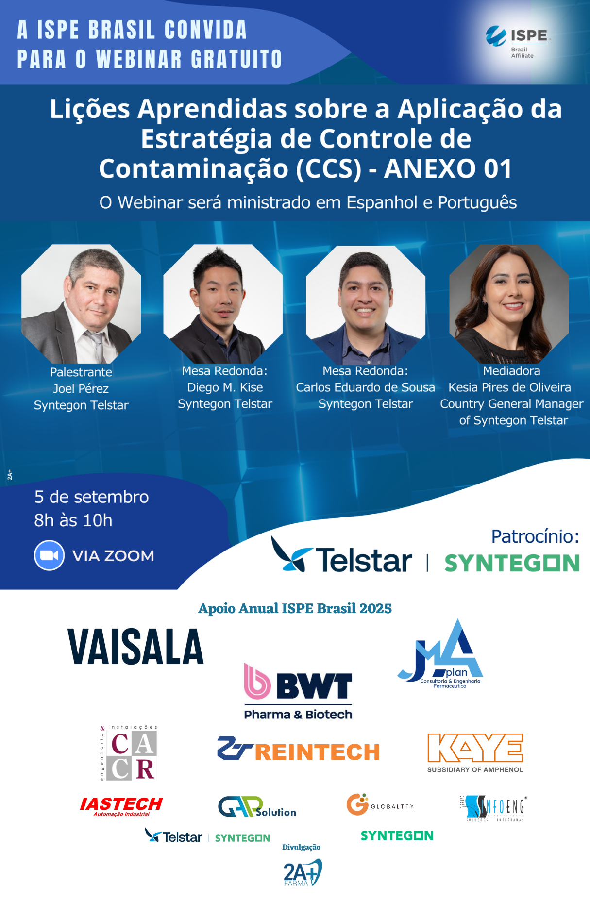 “Webinar Gratuito: “Lições Aprendidas sobre a Aplicação da Estratégia de Controle de Contaminação (CCS) – ANEXO 01”