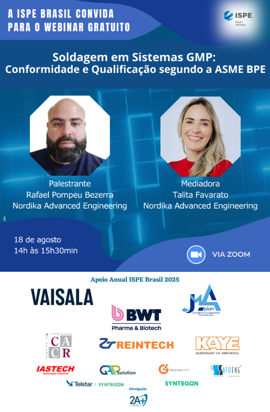 Webinar Gratuito: “Soldagem em Sistemas GMP: Conformidade e Qualificação segundo a ASME BPE”